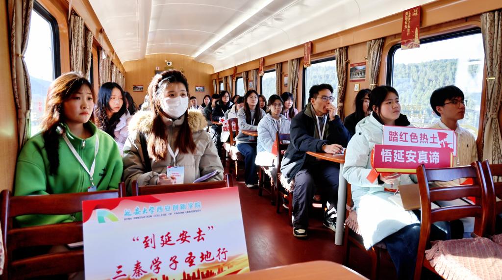 11月22日至23日,延安大学西安创新学院组织35名学子开展“到延安去”研学活动。校党委副书记杭涛、学生处处长赵双勇、党群工作部副部长刘旭统筹指导活动全程,马克思主义学院专职教师赵玥依托专列原有红色资源,在移动车厢中开展“列车上的思政课”,让行走的思政课活动从西安火车站启程,随铁轨延伸、伴实践深化。